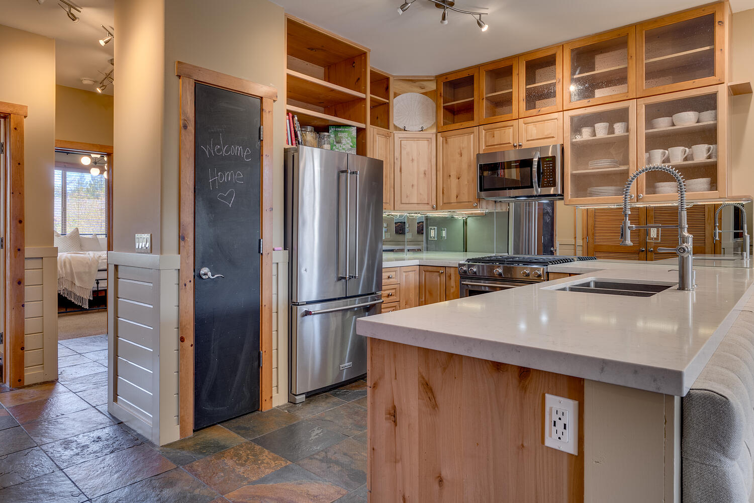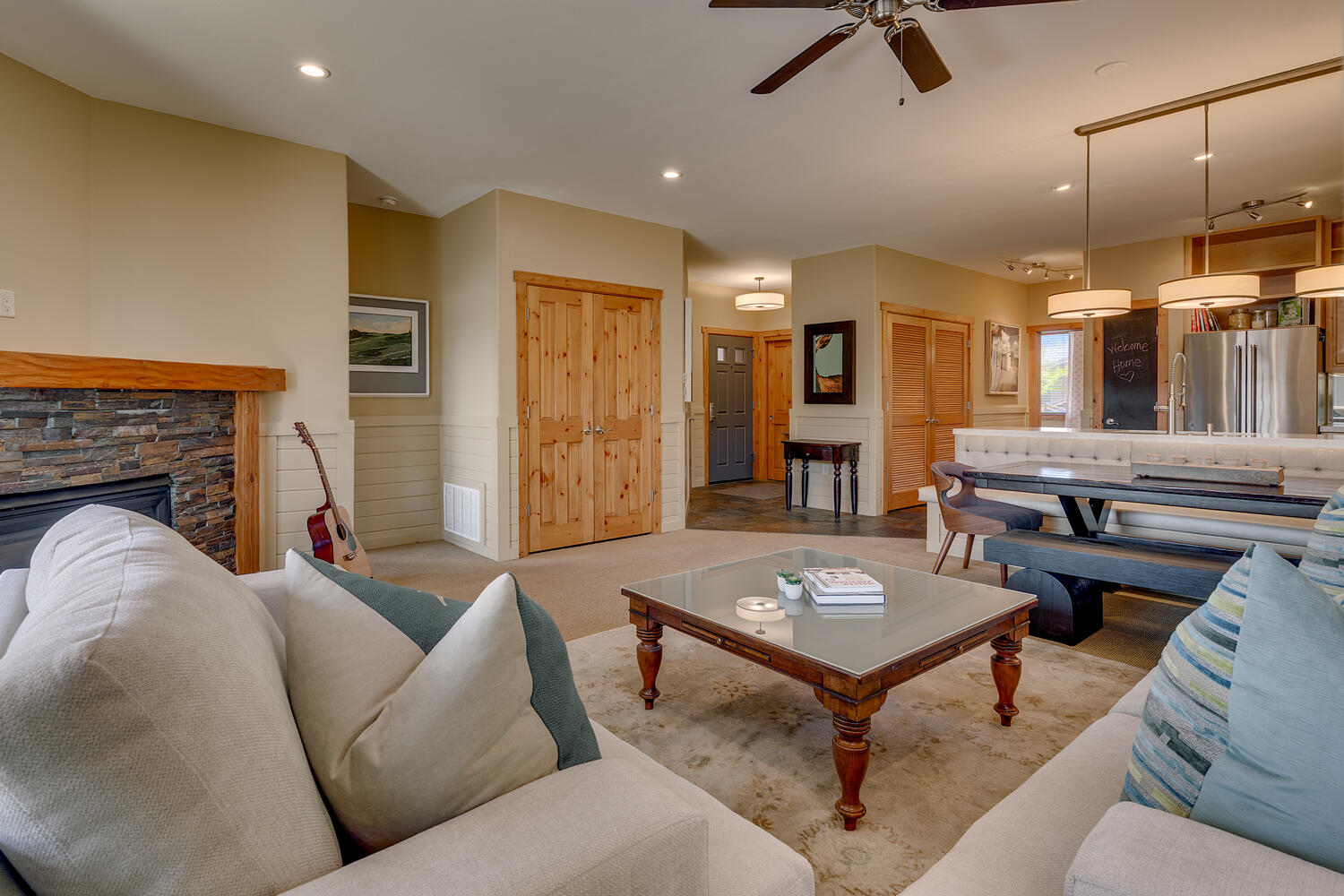 Relax on the private back deck or unwind in the sunlit, open living space. HOA dues include building structure insurance, exterior maintenance, and snow removal from the streets and driveway, making this a true lock-and-leave mountain retreat. A one-car attached garage complete with epoxy floor and garage door opener. A snow/security monitoring driveway camera and wifi-controlled heating inside the condo.